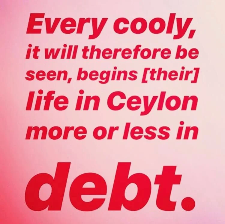 The kangani advanced sufficient money to prospective immigrants to clear their outstanding debts. The recruits therefore became obliged to the kangani but then they hoped to clear the debt to the kangani and return to their homes with some savings. "Every cooly, it will therefore be seen, begins his life in Ceylon more or less in debt." The kangani brought rice and food-stuffs for the recruits and "looked after them" throughout the journey to the estate. He rarely spent enough on the basic requirements of his recruits.